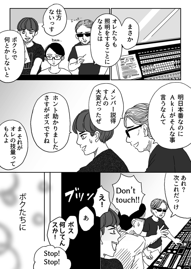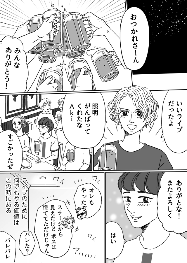 うわー、それは想像するだけで良い瞬間ですね。マンガのエピソードにもある、ライブ照明を自分でやった瞬間とか、最高の思い出なんじゃないですか?