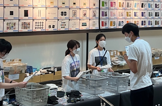 会場で販売するための準備をします。会場によって販売場所が屋外のテントであったり、会場内のロビーであったりと変わるので、詳細を確認し、商品の搬入時間なども打ち合わせをして決定します。