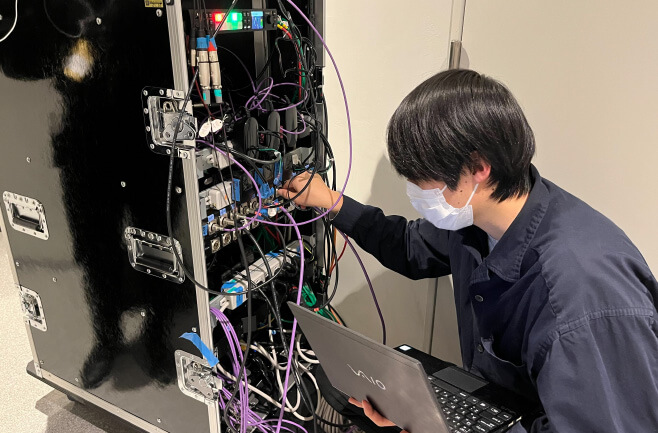 現在は業務で音楽ライブの自動撮影システムの開発をしているのですが、デスクで手を動かして開発するだけでなく、実際の現場で動作させるところまで広く携われるところが魅力だと思います。実際に開発したシステムで撮影した映像を見て、お客様が喜んでくれたときには非常に仕事へのやりがいを感じます。また、ソニーグループ 本社と仕事をすることも多く、最先端の技術を使ったプロジェクトに関わることができるところも魅力です。