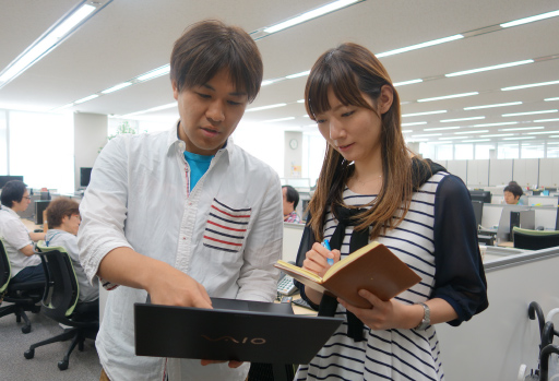 「実は2人とも理系ではなかったんです。だから社会人になるまでに特別な勉強をしたわけではないんです。基本的なシステムのロジックなどは会社に入ってから後追いでいくらでも勉強できます。意外かもしれませんが、大事なのはちゃんとした人間関係が築けるかどうか、自分の意見をしっかり言えるかどうか。この会社の特徴でもありますが、結構勢いのある人が多いんですね。そこにちゃんと自分の意見が言えないと、相手の意見だけで偏ったシステムができてしまったりするんです。うまくバランスをとって、情報システムという立ち位置で、ちゃんと意見することも大事です」